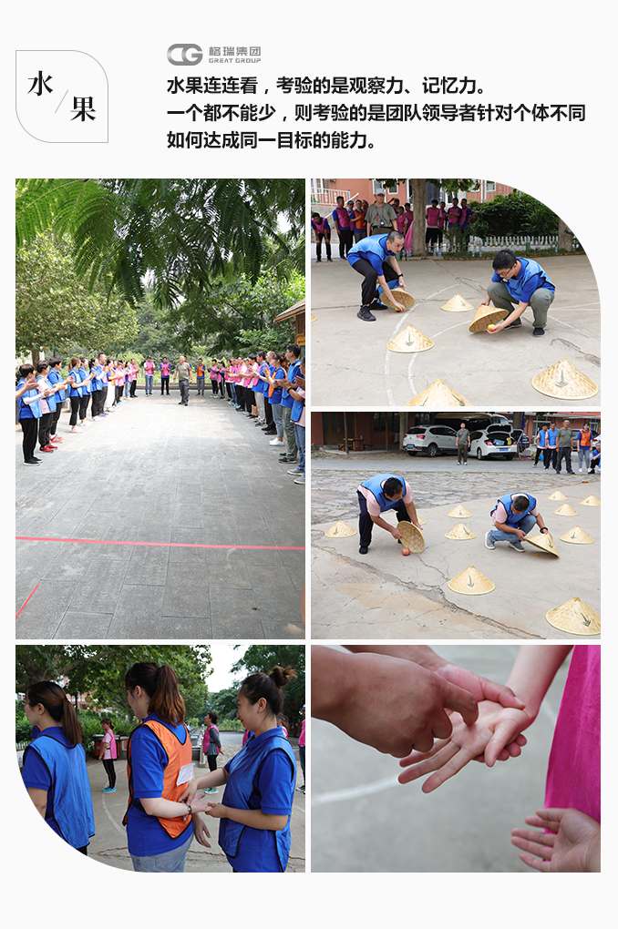 水果連連看,考驗(yàn)的是觀察力、記憶力。一個(gè)都不能少,則考驗(yàn)的是團(tuán)隊(duì)領(lǐng)導(dǎo)者針對(duì)個(gè)體不同如何達(dá)成同一目標(biāo)的能力。